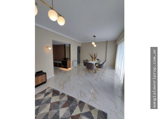 Dólares AmericanosDepartamento 4 ambientes con hall de recepción con perchero y banco. Living comedor con balcón saliente. Cocina moderna con peninsula totalmente equipada, incluye parrilla. Comedor diario. Dormitorio principal con vestidor y balcón saliente. Segundo dormitorio con placard empotrado. Tercer dormitorio con escritorio . 2 baños completos. Toilette. Calefacción por radiadores. Cochera fija en el mismo edificio.